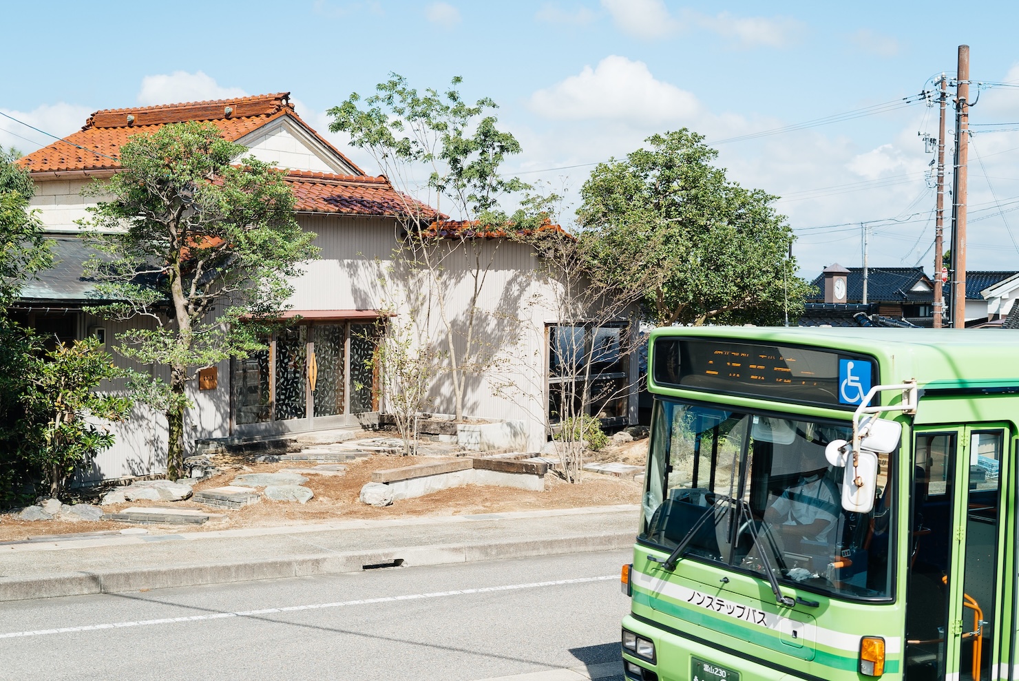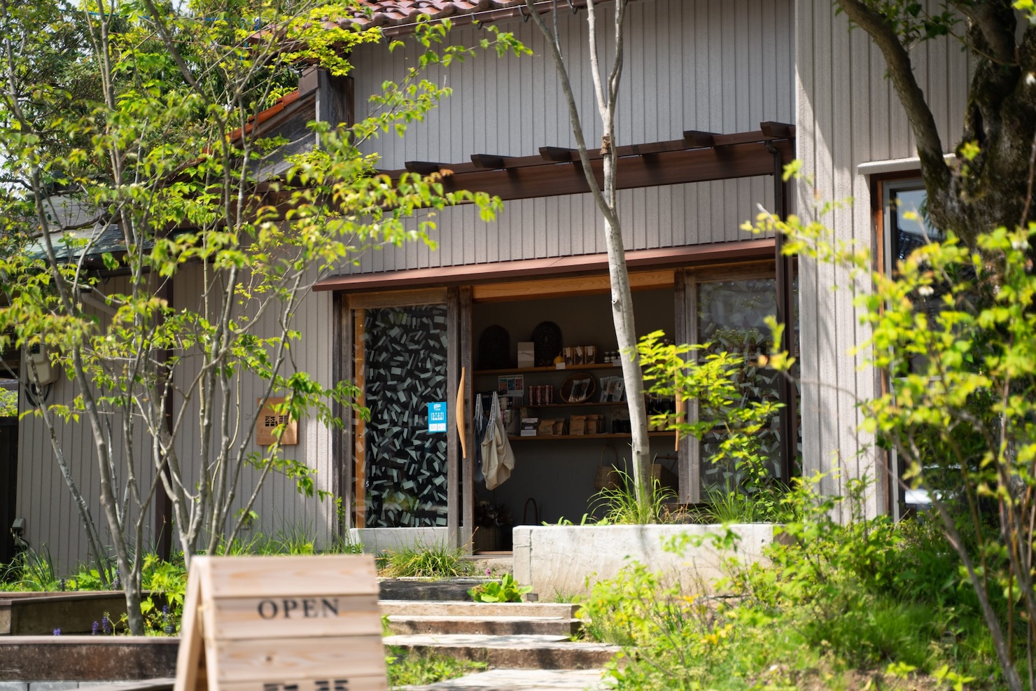 そんな、地域に開かれたショップギャラリーを表現するために、内外部をつなぐ大きな開口部を設置、また建物がセットバックされた中間領域(庭)にバスの待合スペースを設けるなど、自由に活用できる「小さな公園」のような空間を用意した。その庭には作庭家・根岸新氏によって選定された様々な草花たちが四季の移ろいを表現し、ガラスエントランスには季の実のロゴからつくりだされたパターンが半透明のカッティングシートで施され、季節や時間によって影が変容し、訪れる度に変化するショップギャラリーの顔を楽しむことができる。